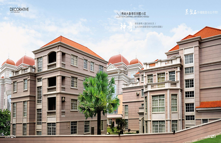適用于山莊別墅、酒店、賓館、娛樂場所、商業會所等建筑物內外墻大面積使用。